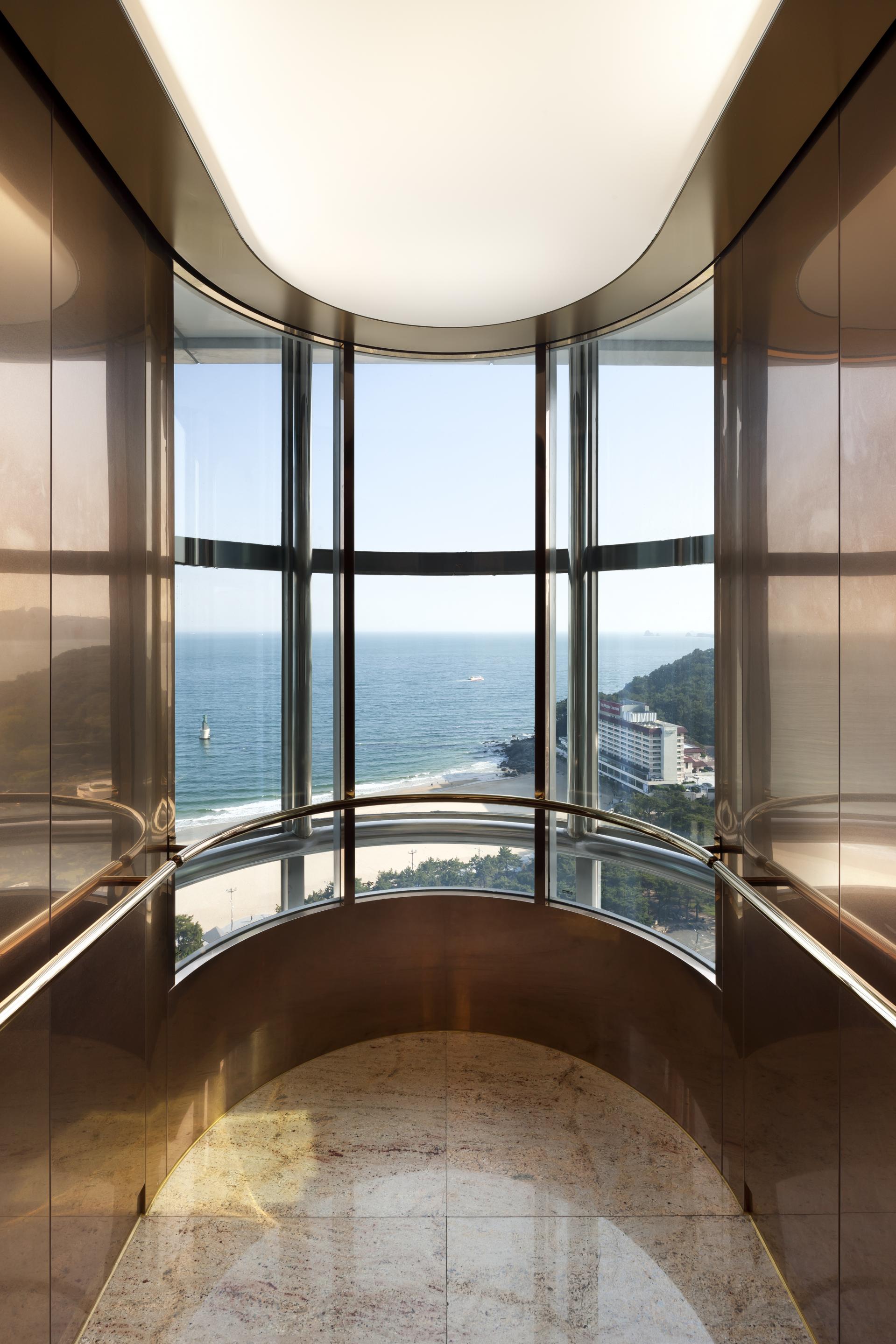 An observation elevator overlooking the vast ocean and dazzling white sandy beaches. The Haeundae Grand Hotel, now sadly lost to history, opened in 1996 with a total building area of 31,000 square meters, 320 guest rooms, and the largest banquet hall in Busan. Starting with the remodeling of three observation elevators in August 2015, we replaced a total of nine elevators with 150m and 90m speeds running from the 6th floor to the 22nd floor above ground. The three observation elevators remodeled and installed at Haeundae Grand Hotel are worthy of a first-class hotel. High-speed elevators with a speed of 150m/min were adopted so that tourists can enjoy a panoramic view of the sea while traveling to their rooms. At night, LED lights on the inside and outside of the elevators add to the beautiful scenery of Haeundae.
