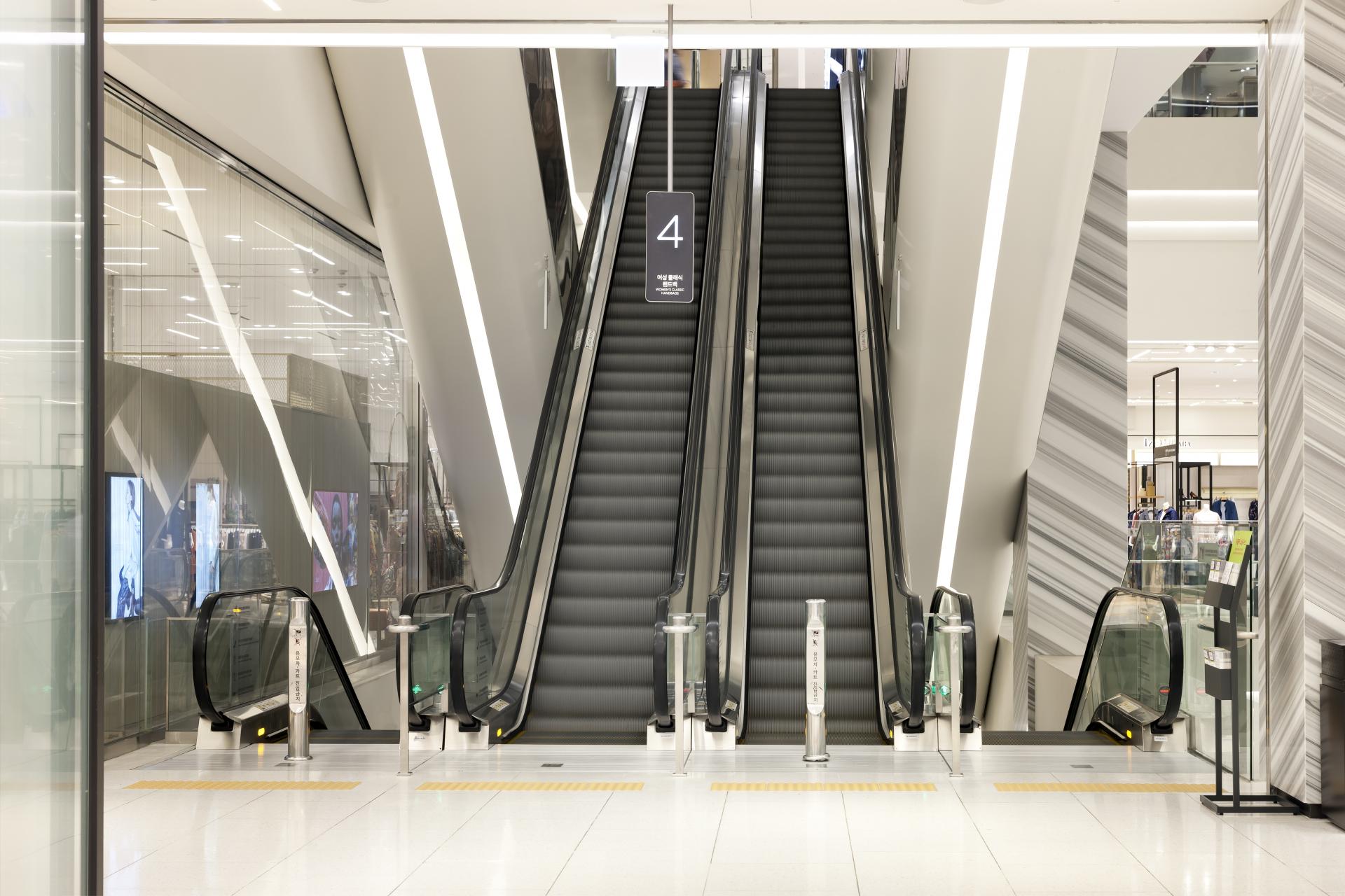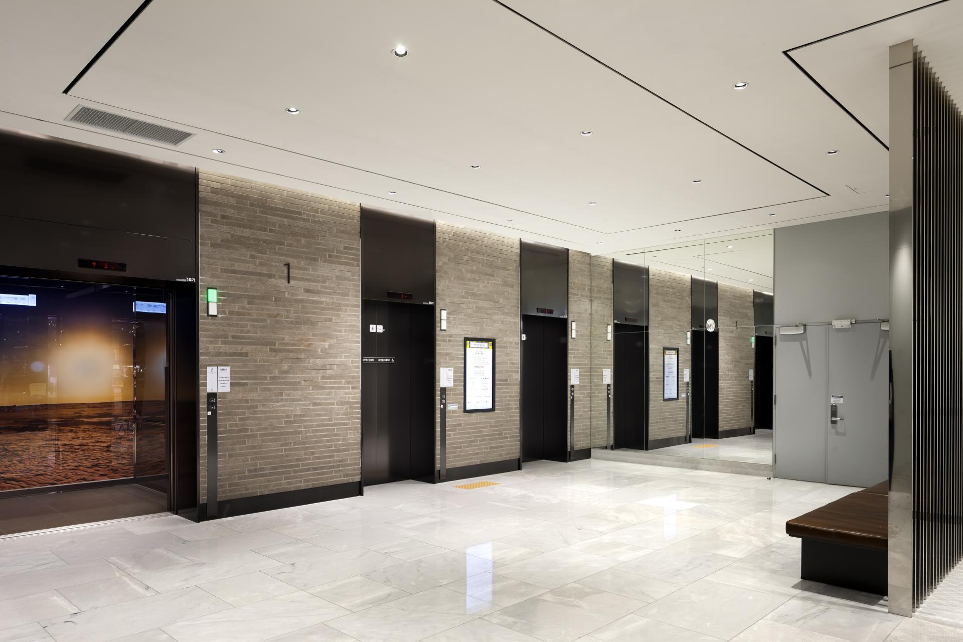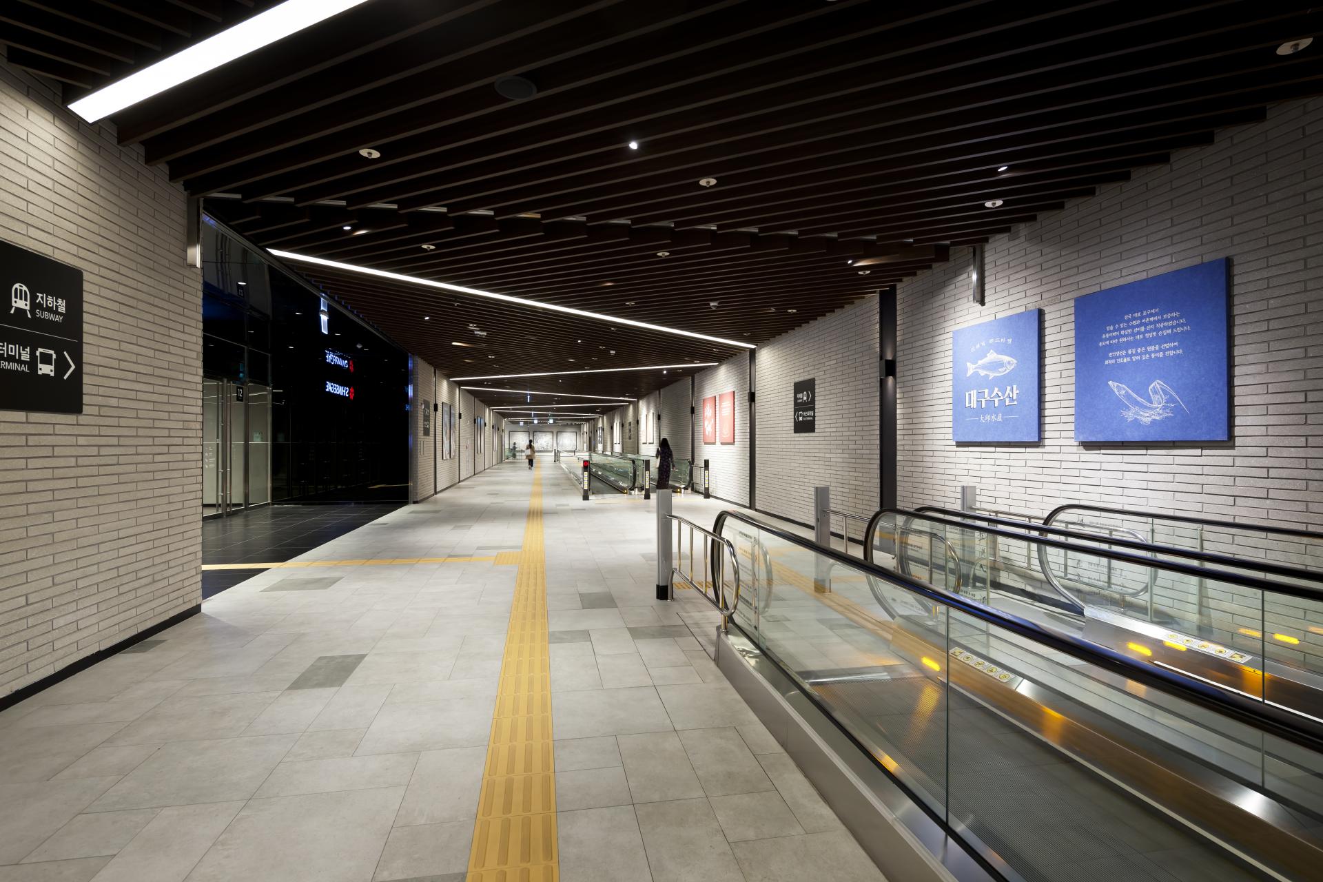 Dongdaegu Intermodal Transit Center is the first intermodal transit center in Korea where trains including KTX and SRT, express buses, and Daegu Metro Line 1 are connected together. With the addition of Shinsegae Department Store Daegu, it has become more than a transportation center, but a national entertainment space where people can experience shopping, leisure, and culture. Located in Sincheon-dong, Dong-gu, Daegu, the transit center has a gross floor area of 338,310 m², seven basement floors, and eight above-ground floors, and we installed 38 elevators, 98 escalators, and eight moving walkways with speeds of 105m (27 units), 90m (5 units), 60m (4 units), and 30m (2 units) between the center and Shinsegae Department Store Daegu. The elevator design, which is based on titanium black, has a stunning photographic look. The reflective material on both sides creates a sense of openness in the elevator, as if you are standing in a vast space. Opened in December 2018, the Dongdaegu Intermodal Transit Center has seen a rapid increase in the number of visitors and traffic users, changing the center of Daegu from Dongseong-ro to Dongdaegu.