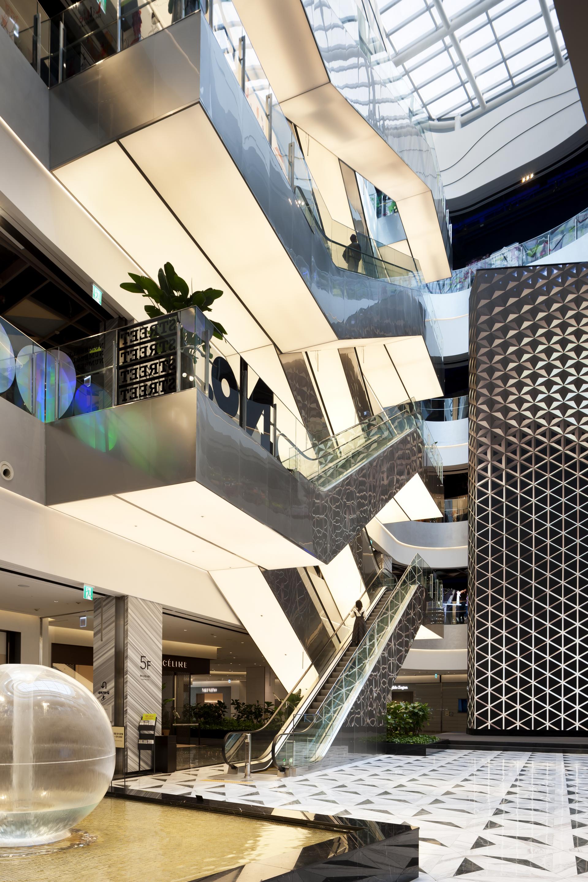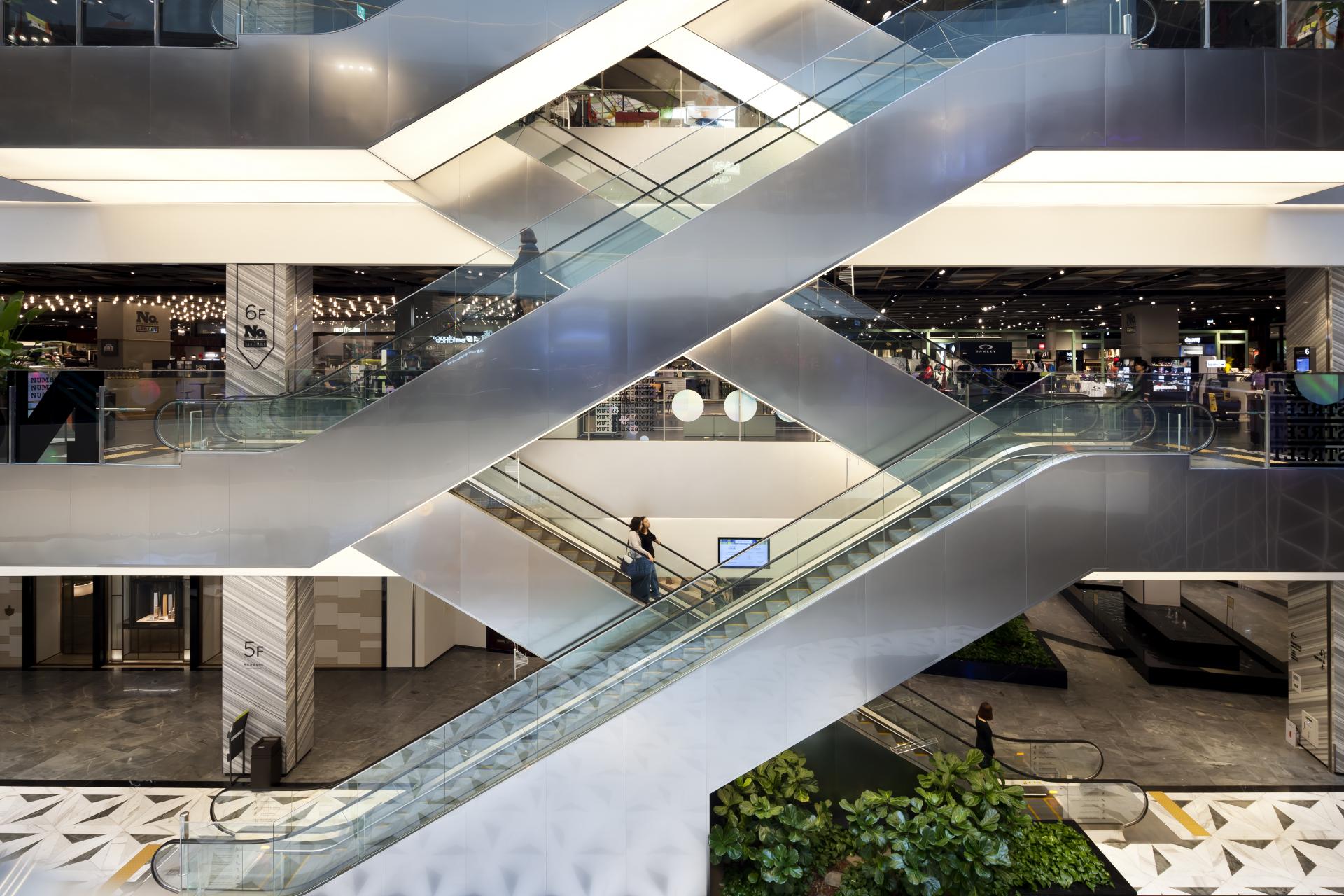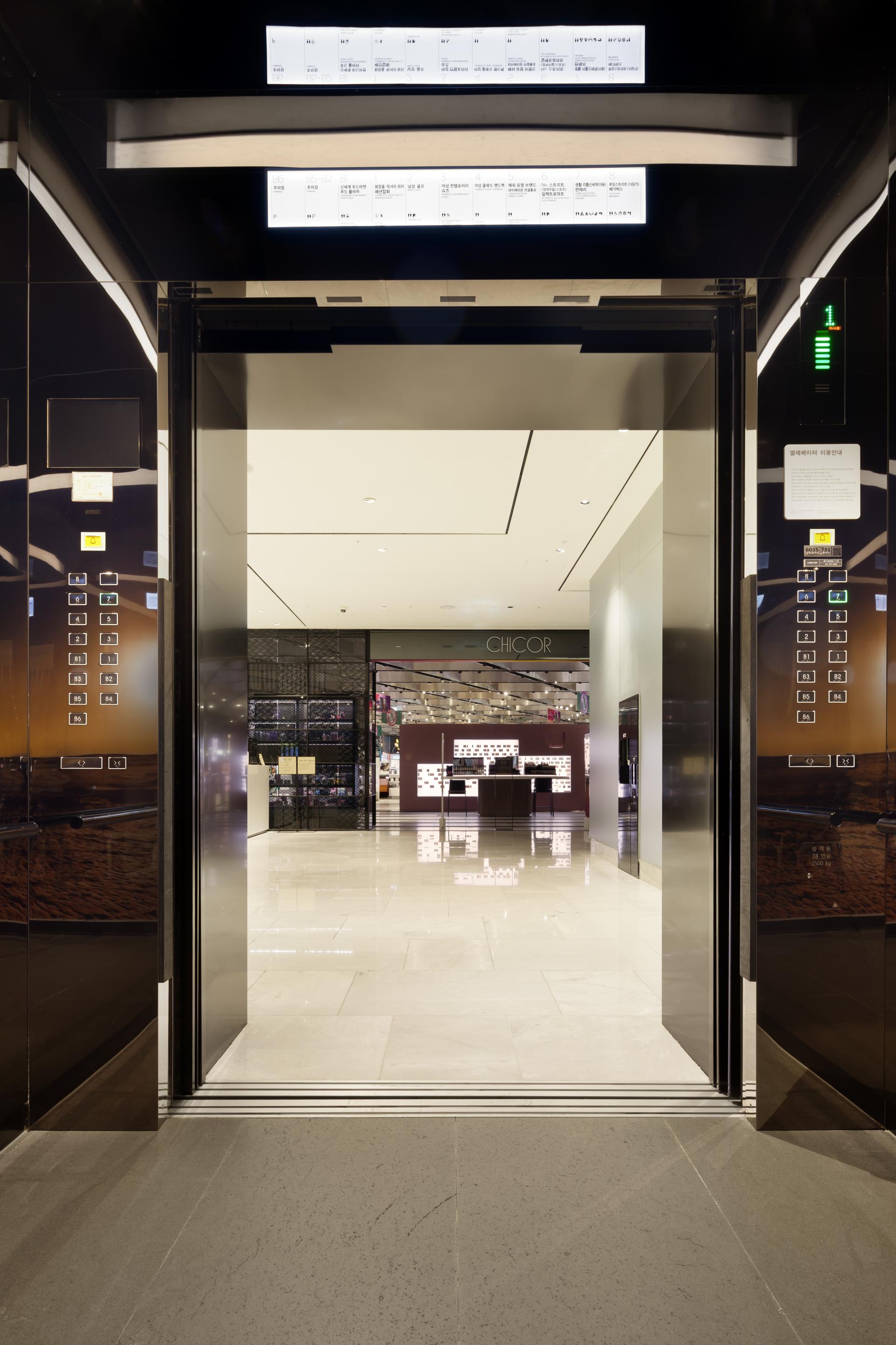 Dongdaegu Intermodal Transit Center is the first intermodal transit center in Korea where trains including KTX and SRT, express buses, and Daegu Metro Line 1 are connected together. With the addition of Shinsegae Department Store Daegu, it has become more than a transportation center, but a national entertainment space where people can experience shopping, leisure, and culture. Located in Sincheon-dong, Dong-gu, Daegu, the transit center has a gross floor area of 338,310 m², seven basement floors, and eight above-ground floors, and we installed 38 elevators, 98 escalators, and eight moving walkways with speeds of 105m (27 units), 90m (5 units), 60m (4 units), and 30m (2 units) between the center and Shinsegae Department Store Daegu. The elevator design, which is based on titanium black, has a stunning photographic look. The reflective material on both sides creates a sense of openness in the elevator, as if you are standing in a vast space. Opened in December 2018, the Dongdaegu Intermodal Transit Center has seen a rapid increase in the number of visitors and traffic users, changing the center of Daegu from Dongseong-ro to Dongdaegu.